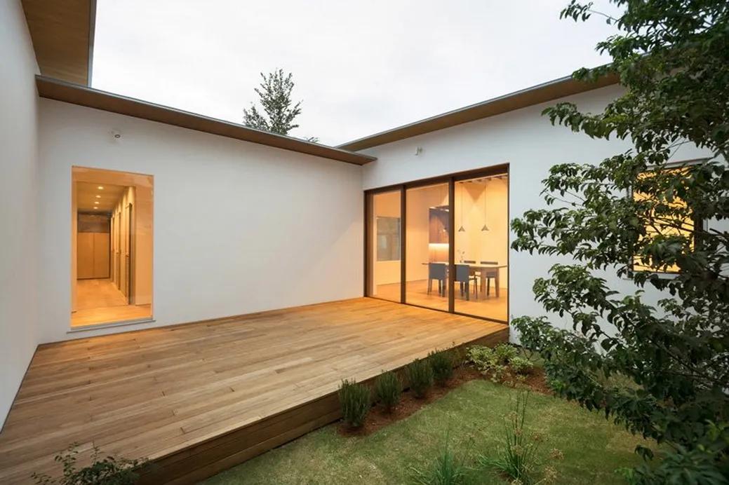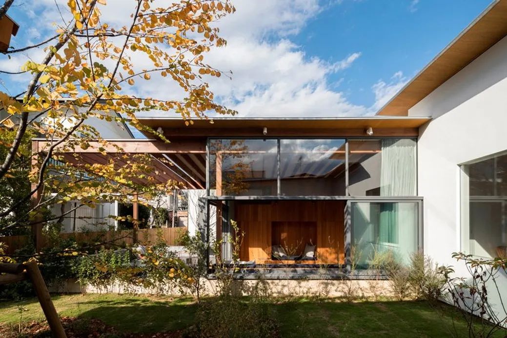 这是一幢单层的建筑,推开窗即是花园。通过在整个站点上以方格图案布置房间和花园并增加外部表面积,创建了所有房间都带有花园的明亮开放的环境。
