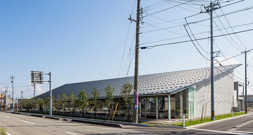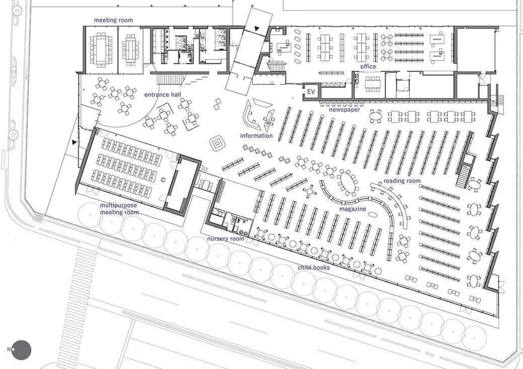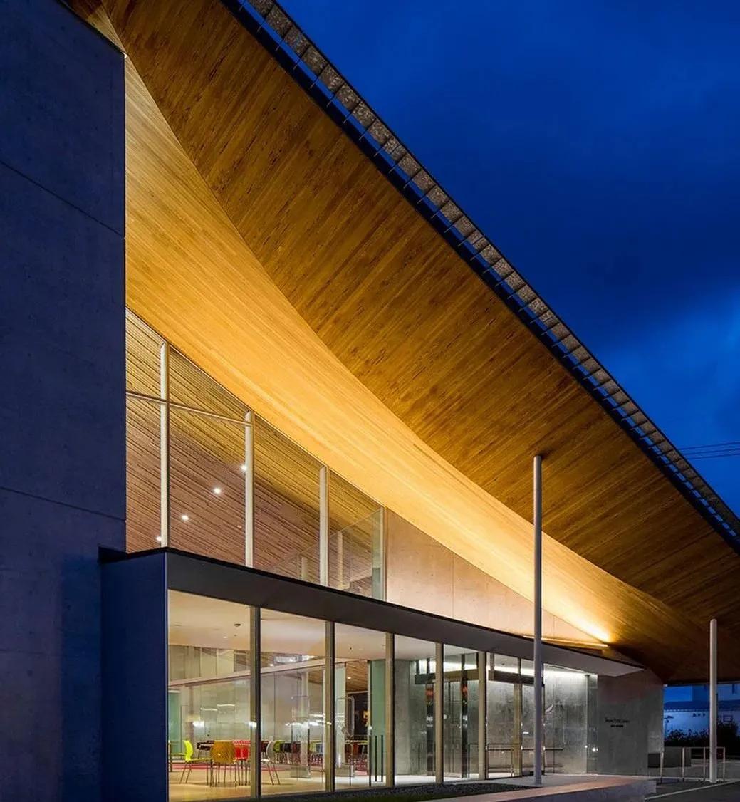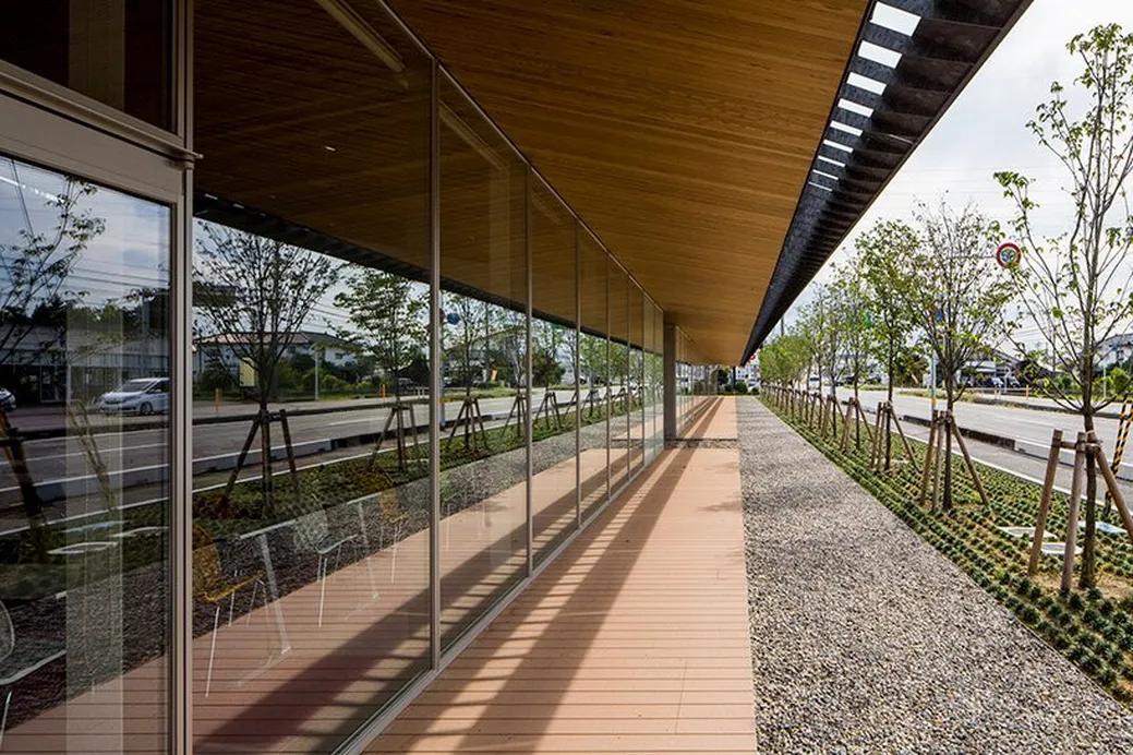 图书馆大面的落地玻璃向街道行人透露着内部的空间。图书馆体量庞大的屋顶,成为tonami市的新地标;空间的内部也由独特的顶篷定义,倾斜屋顶将光线引入整个空间。进入图书馆的访客被温暖的木头装饰和透过高高天窗与落地窗引入的自然光线所笼罩。