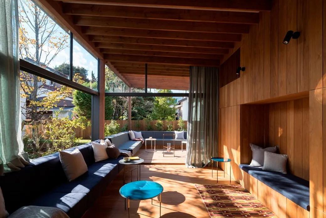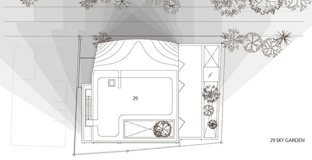 最高层设计有一个面向邻近森林的开阔的平台。设计团队将露台以隔墙和深檐封闭,以阻挡经过的火车噪音和邻近建筑的视野。为了让自然阳光照射到森林,建筑边缘进行了圆角化处理,因此,建筑的内部形成了一个洞穴般的空间,让空间充满安全感。
