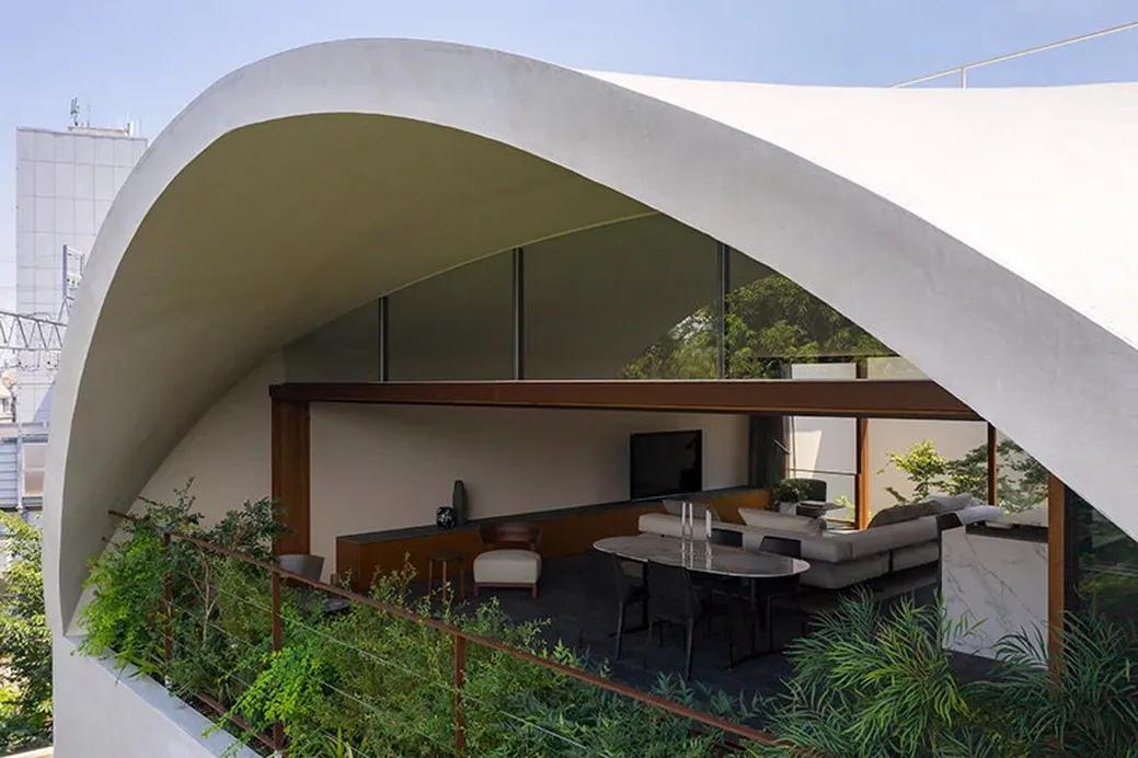 “sky cave”建筑由MIKAMI Architects设计,是东京的一栋三层楼高的建筑,其一楼设有一间诊所,上方有两个住宅。该场所位于东京目黑区,紧邻火车站,四周绿树环绕。建筑师通过打造不同特征的花园,延续周围的生态绿意环境。