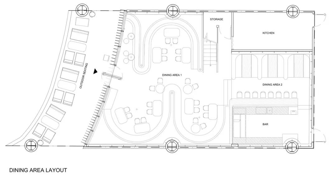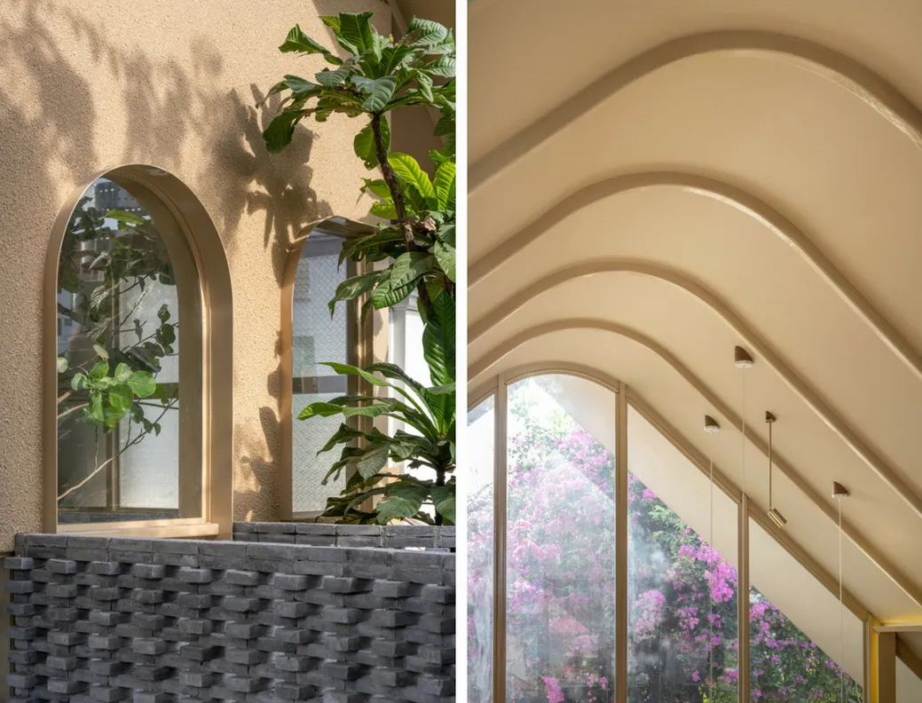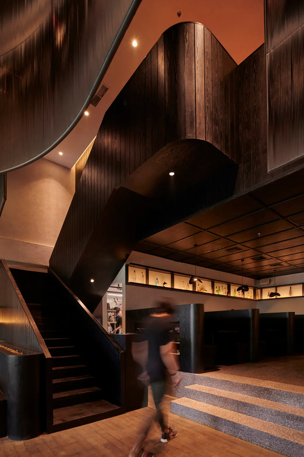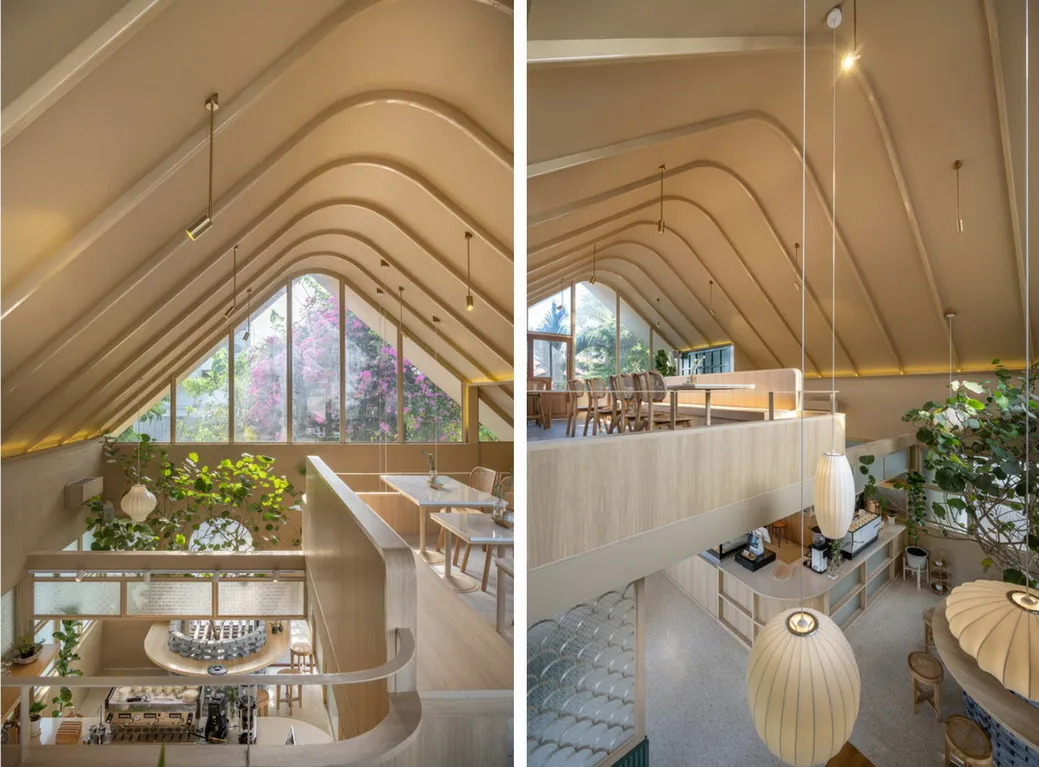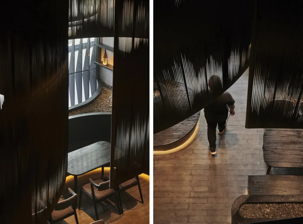 二楼北部的屋顶线条与弧形天花板设计概念也源自棕榈叶,以流动的弧线结构创造了灵动而趣味的空间效果。这些象征性的空间,使食客可以享用美食的美味,并通过空间传达的建筑视角给人留下深刻的印象。
