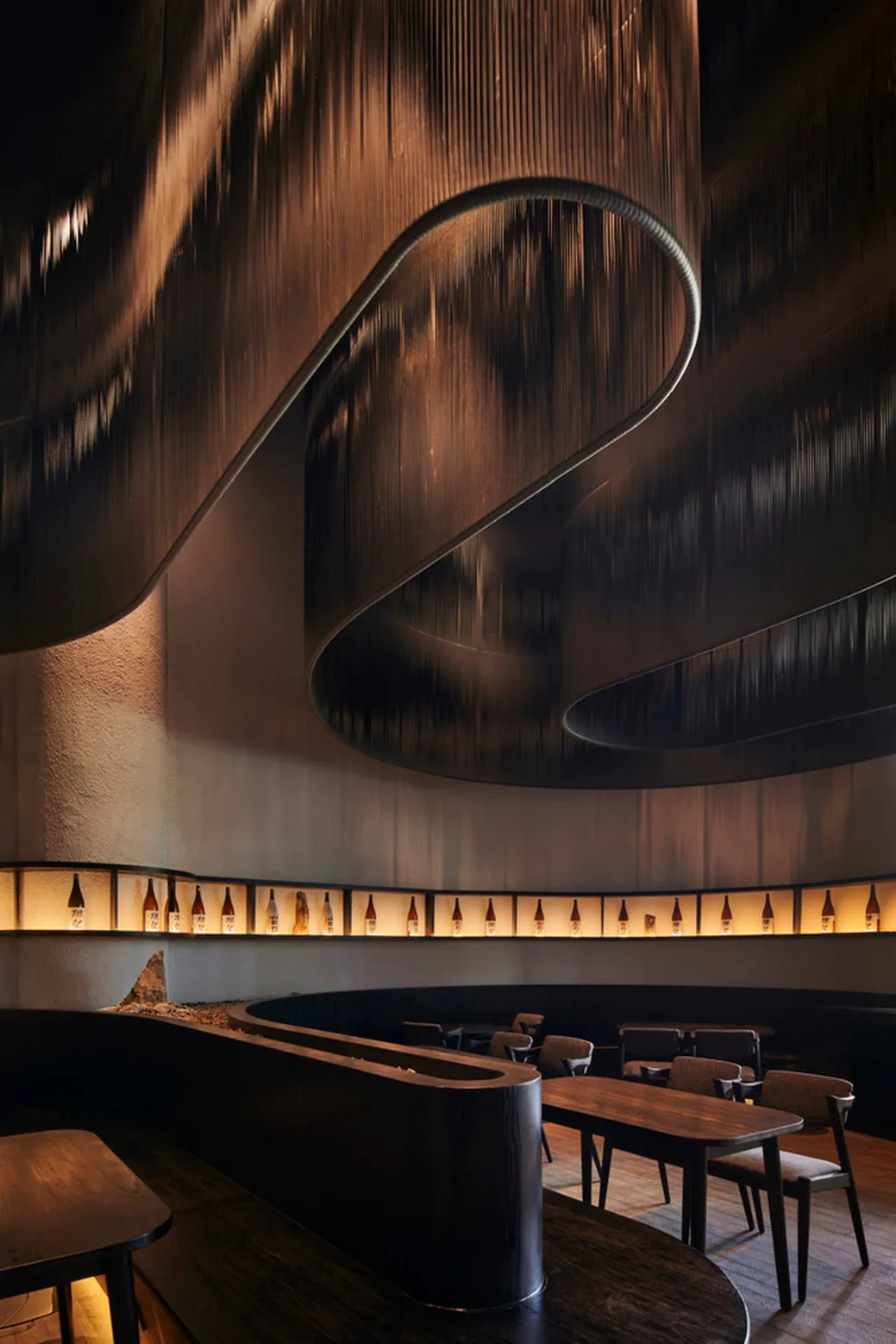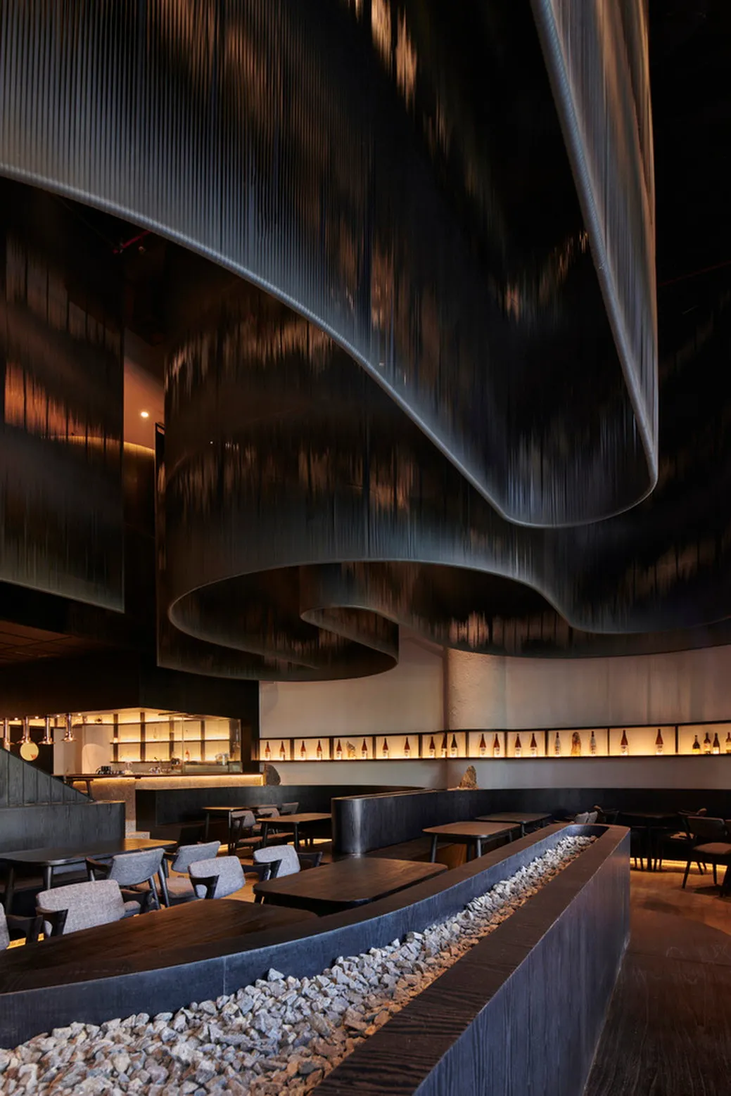 ISSEI餐厅位于雅加达的中央商务区,是一家日式休闲餐厅,夜间则成为一间清酒酒吧。Studio Kota的设计灵感来自大自然中的有机图案,自由流动的曲率被应用至座椅和悬挂式屏幕的几何形状中。