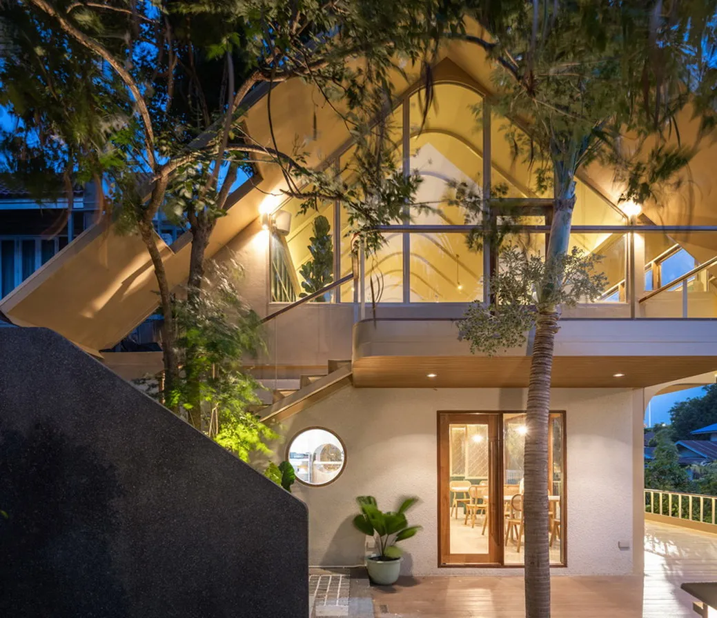 Tewa Cafe是一家位于Pa Sak河上的泰国餐厅。BodinChapa Architects设计师提取了棕榈叶鲫鱼编织的概念,打造出亲水温馨的空间氛围。