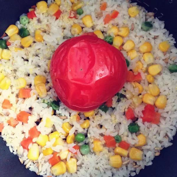 玉米青豆胡萝卜版整个番茄饭