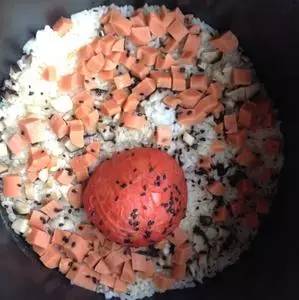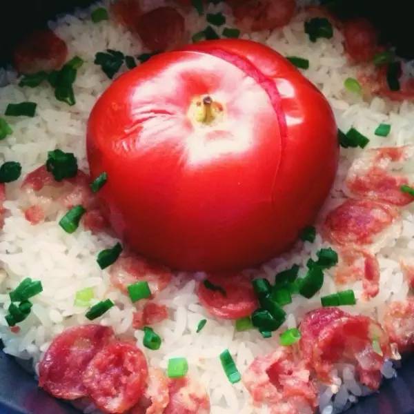 火腿肠黑芝麻版整个番茄饭
