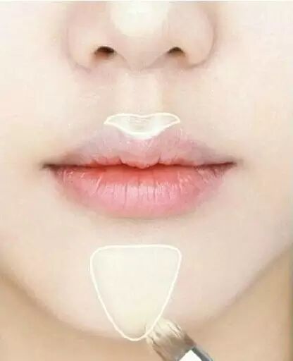 下巴和额头—样要画出越向下越尖的倒三角形,唇峰的位置也如图标描绘。