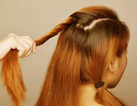 步骤二:之后将最上面一层的头发扭转起来。