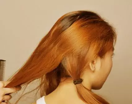 步骤一:将头发分成三等分,右边的一层扎成一根马尾。