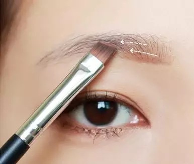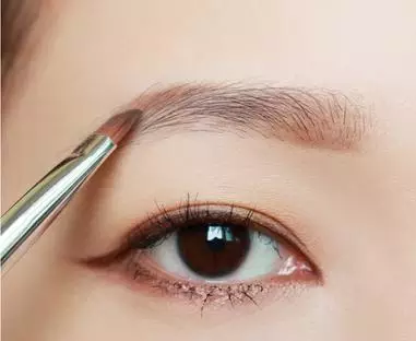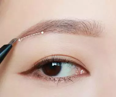 step 2:沾取跟发色相近的眉粉!沿着眉毛的走向画出眉头。