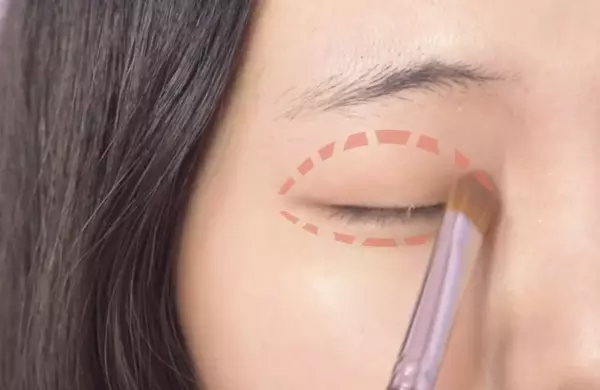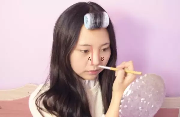用刷子沾取哑光的大地色眼影照着图中AB两区画线条(也可以直接用眉笔来画)。