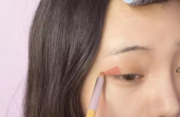 之后用深咖啡色眼影在眼尾的位置画一个小小的三角形。