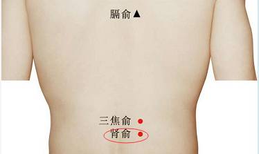 肾俞穴位于第2腰椎棘突下旁开1.5寸(2横指宽)处,左右各有一穴。