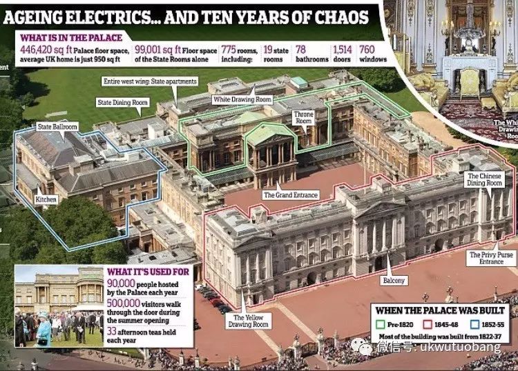 现在的白金汉宫占地4.15万平方公里,共有775间房子!其中包含19间国事厅、78间浴室、1514扇门,760扇窗……如今,白金汉宫又到了夏日参观季,哪些我们可以参观?