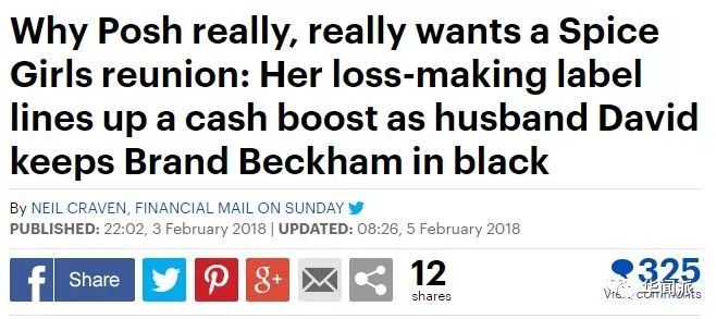 英媒爆料,就是这金钱的诱惑,让维多利亚愿意重归团体。因为,贝嫂的服装品牌亏钱了。