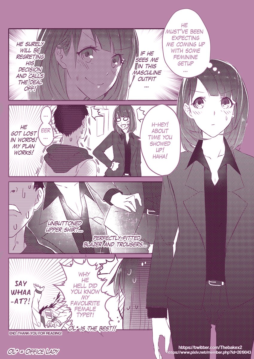 ▼于是エルも就穿成OL风格与男同学约会,结果对方最喜欢的就是「伪娘属性+OL套服」,马上就鼻血大爆喷!血条归零!