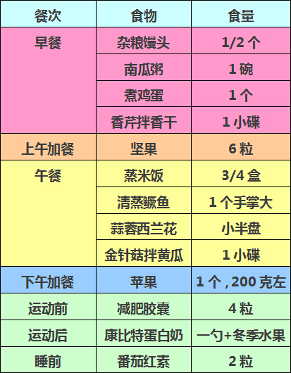 饭后走走吧,肚子圆了,慢走30分钟晒晒太阳晒晒真舒服……么么哒!下午4点补充些零食吧,真心饿了,我就是一个吃货。早晨带了一个苹果,吃个大苹果补补膳食纤维和维生素C。5点了,马上就可以下班的节奏了,好开心。今天去健身房吧,先来根香蕉充充饥,再吃4个减肥胶囊。6点半到了健身房,(⊙o⊙)…,怎么那么多的人呀,赶紧占位置。吃完减肥胶囊一运动感觉浑身好热呀,感觉耐力强了呢。今天搏击操一小时,无氧运动20分钟,今天的教练好帅呀……