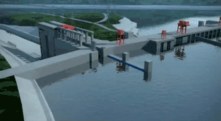 首先船舶驶入承船厢,关闭承船厢下游闸门。