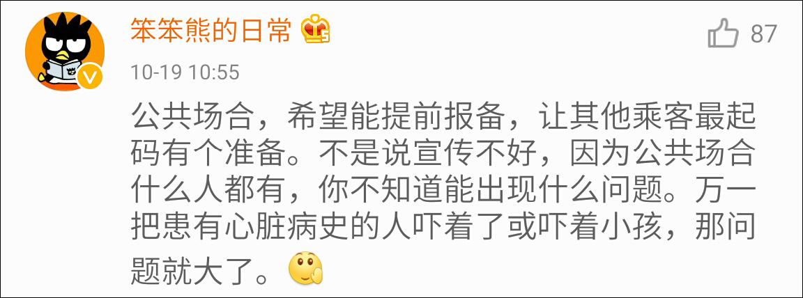 对于此类行为,成都地铁在官方微博表示,此类举动不仅惊吓乘客,也伤害了这座城市的文明。成都地铁对此坚决说NO!