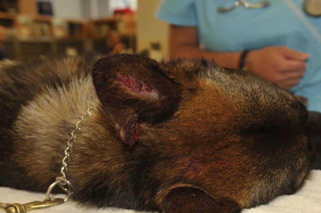 Maxx的耳朵有明显的伤口及血迹,图片来源:starnewsonline.com