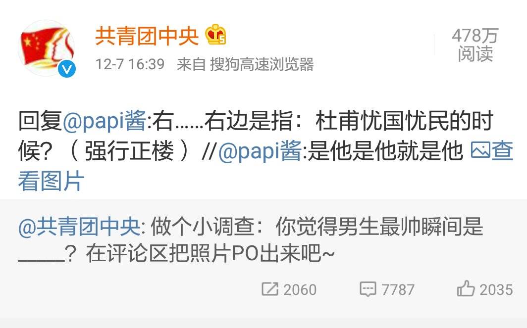 这时候半路杀出来个@Papi酱 ,她的男神居然是……