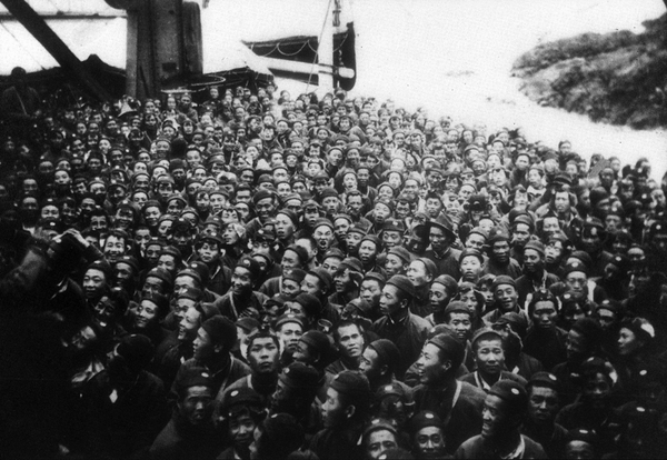 猪仔实际上是一个广东话了,华工不是被抓到船上去吗,船上就是要给他们吃,不一定是每个人有一个碗,就是一个大锅,你再熬一点什么东西吃,然后每个人都蹲着,就像喂猪一样。