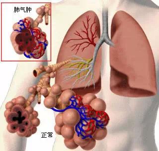 烟草产生的烟雾可以使体内氧的自由基增加,气道的中性粒蛋白释放的一种蛋白酶会使肺弹性纤维被破坏,加之肺部支气管内积聚的有毒物质,会阻碍人体吸入之空气正常呼出,令肺部细胞膨胀或爆裂,导致患病者呼吸困难,从而导致肺气肿的发生。