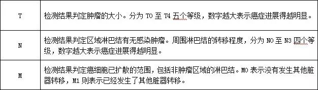 目前国际上常用美国癌症联合委员会(AJCC)开发的TNM分期标准。癌症首先在所发生器官的局部不断生长,当生长到一定程度时出现局部淋巴结转移,进一步生长将出现全身其他部位的转移,TNM反应了癌症发展的一般规律和过程。