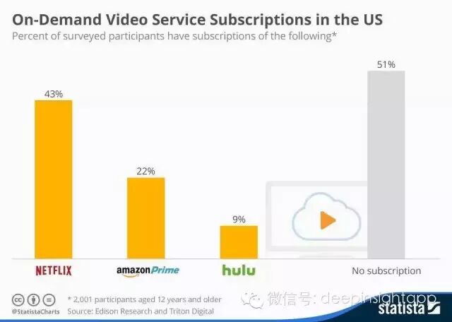 由于可能会有重复付费,这张图可能不能完全反应美国流媒体市场的全部信息。但基本上Netflix拥有一半不到的市场份额,亚马逊的Prime 也有22%的北美付费用户。而且就在本周,亚马逊宣布其Prime流媒体的价格比Netflix便宜一美元。那么性价比到底谁好呢?