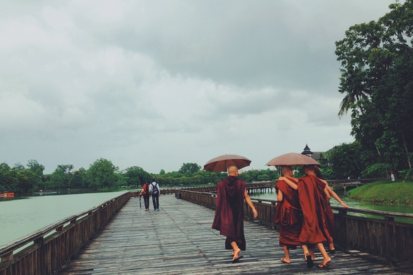 曼德勒的景点需要包车,我们直接找旅馆订的,因为问了一下价格都差不多。包括马哈木尼寺,乌本桥,千人僧院,石皆山,INWA,最后在傍晚回到乌本桥看日落。INWA古城到码头后需要坐摆渡船,1人800K,上岸后需要租马车,两人是4000K,所有景点马车夫都会带你去看。除了觉得去千人僧院看和尚吃饭这点很奇怪,其他地方我都很喜欢,特别是INWA的柚木寺。对了,曼德勒所有景点的通票是10刀,包括曼德勒山。但我们没去成。