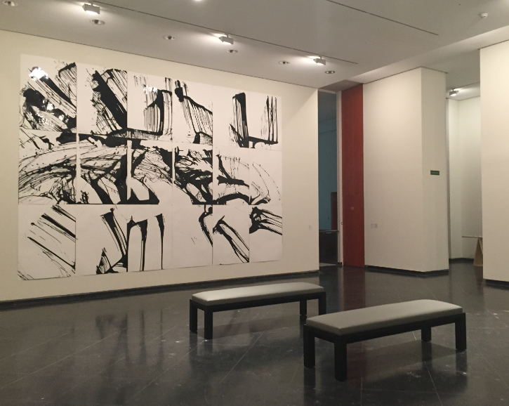 1. Georges Adilon的作品,远看似乎像是中国的泼墨,其实是用各种醇酸树脂黑漆的实验。并且他的作品总是会涉及到空间与空间的对话。这个如今广为中国当代艺术热衷的手法,人家已经在上世纪60-70年代玩过了。