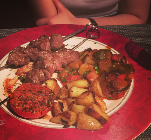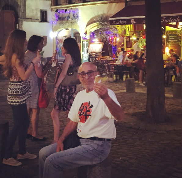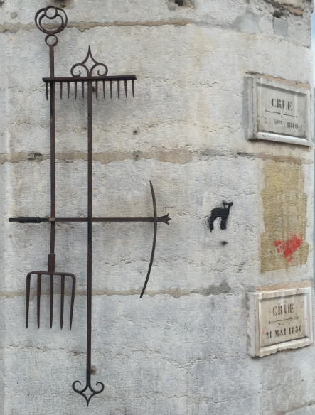 既然是美食之都,我们就抛开了Lonely Planet的推荐随心而走,凭眼缘选择餐厅,最终走进古老的拉伯雷餐厅(L’Auberge Rabelais)。说起来,这家也是我们在法国行中唯一一家在室内用餐的餐厅,我们看中它室内选择白色桌布与红色座椅的低调与精致,以及墙上的一幅小肖像,感觉是一家有底蕴的餐厅。确实,这家餐厅就是里昂最特色的那种规模不大、气氛友好“家常酒馆”(bouchon),消费有点小贵但合情合理,而美食与酒都是最地道的本地菜,服务员走的也是老派的程序,以至于我们说舍弃餐后甜点时,服务员反复和我们确定是真的吗?(烙蜗牛+鳕鱼+羊腿+烤肉+红酒之后,这每一口都是“硬货”的饕餮之后还能吃得下甜品吗?这欧洲人的胃啊……) 顺便一提,拉伯雷就是写下《巨人传》的那位拉伯雷,而书里那位父亲最爱吃的一道菜叫Andouilles,便是今天这些家常酒馆的看家菜。