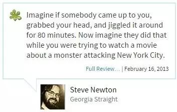 Georgia Straight:试想假如有人抓着你的头不停摇晃80分钟……好,现在想象你在边看怪兽袭击纽约的电影时,边被这么对待。