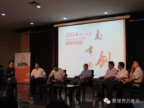刘春华在现场接受媒体采访时说:他不喜欢别人称他为职业经理人或者企业家,更非培训者——他喜欢做一个教育者,更愿意被大家称为“刘春华老师”,乐意为大学生“传道授业解惑”。