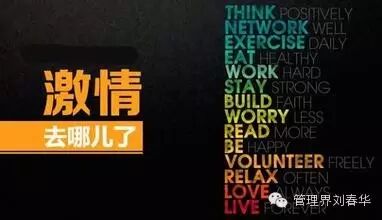还有,激情的保持一定要融入到企业的文化里面去,并且用系统的思维来看激情的作用和使用。例如,海尔集团首席执行官张瑞敏就提出,员工的素养有三点:激情,执着和谦虚,他还形象地比喻:激情好比是车的左轮子,执着就是车的右轮子,而谦虚就是车的闸。你看,激情一定是我们员工素养的一个组成部分,仅仅是提升车的左轮子的速度,车还是加速不了。