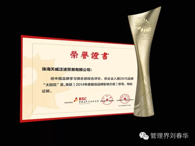 【管理实战】天威泛凌贸易有限公司荣获“太阳花”最佳品牌影响力奖