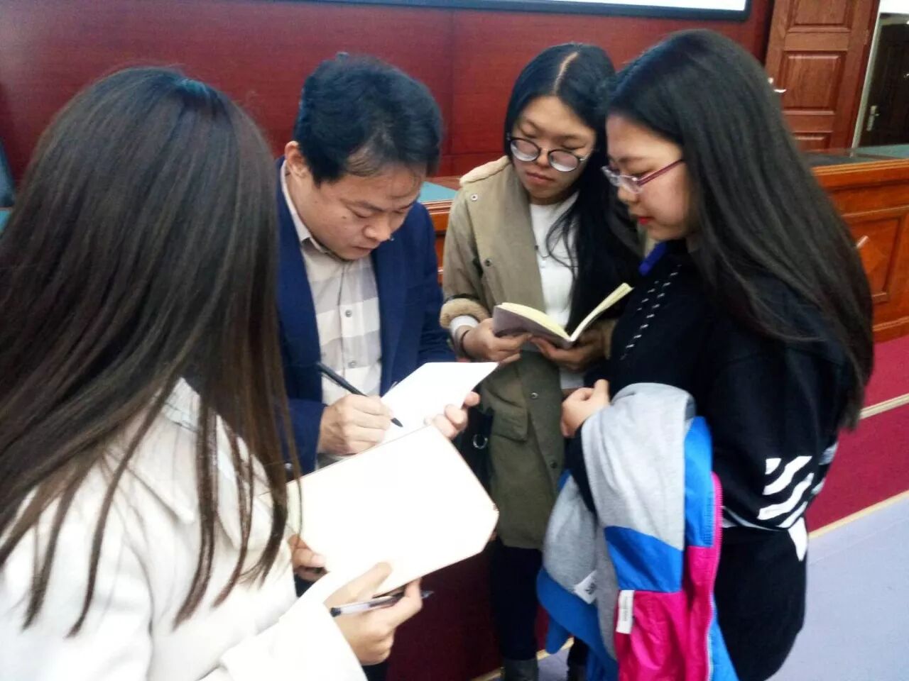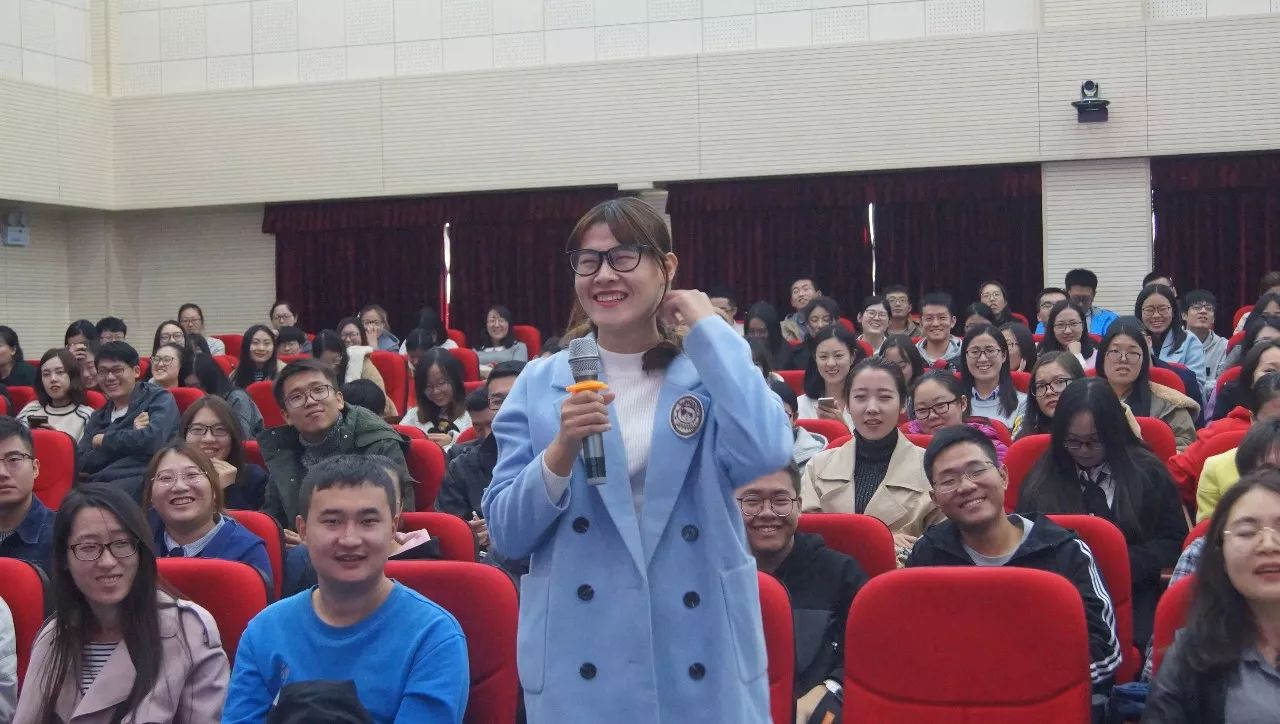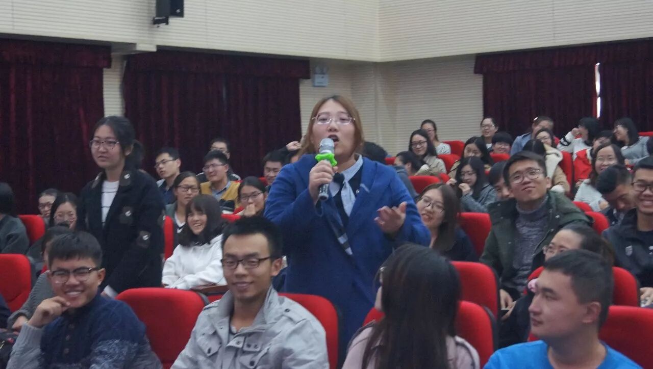 在整个演讲的后半部分的时间,是现场同学与刘春华老师互动的环节,来自管理学院、化工学院、外语学院等多个学院的同学纷纷表达自己所遇到的困惑。刘春华老师对同学们所提出的问题进行了详细的解答,旁征博引、引经据典、语言精辟引得现场阵阵掌声。据小编不完全统计,将一个半小时的演讲中,现场共响起了21次掌声。