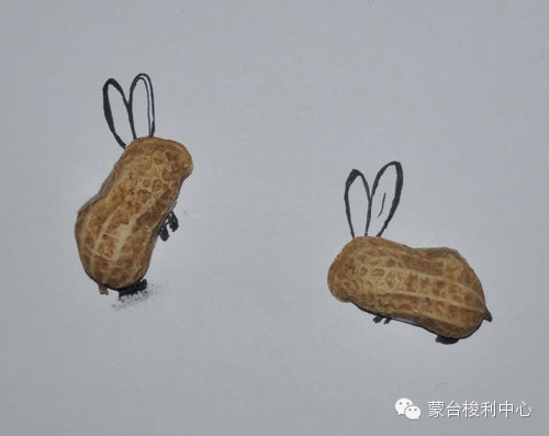 两粒的花生壳像小兔子圆圆的身子,花生尾更是天生的兔子尾巴。