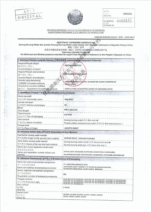 1.这是一款正规进口的燕窝, 经过国家检验检疫严格的检查,进口手续一应俱全。