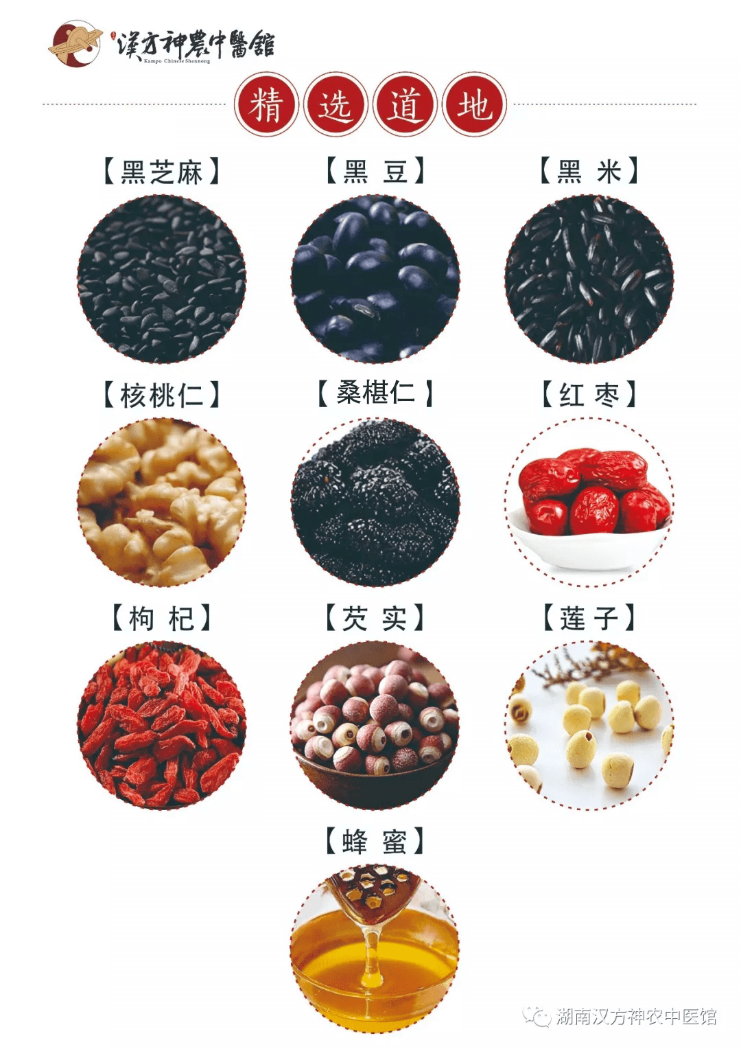 神农中医馆黑芝麻桑椹丸精选黑芝麻、桑椹、黑豆、黑米等黑色食材并在此基础上添加核桃仁、红枣、芡实、莲子、枸杞等多种药食同源中药材,辅以纯正蜂蜜手工制成,不添加防腐剂,口感细腻绵软、自然醇香。