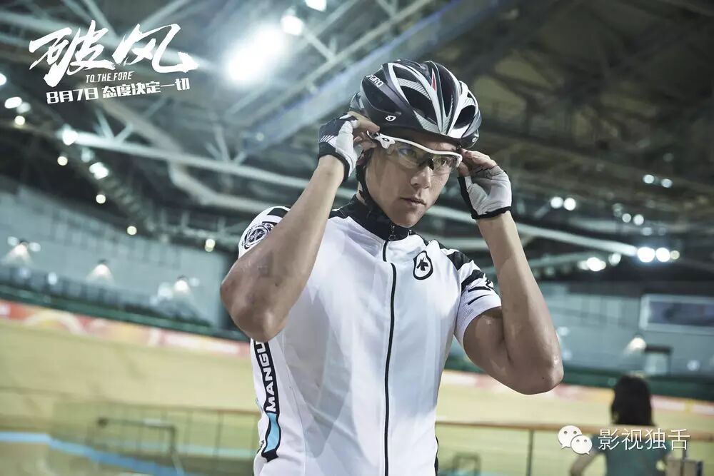 好在文戏只是占据了整部片子的1/4左右,《破风》的运动场面还是做得非常优秀的。首先,运动是一个非常专业的领域,如何在有限的时间内传达出最大的信息量,消弭普通观众与专业题材片子之间的鸿沟,这就考验导演的能力。从整体来说,片子采用的是真实训练和半纪录片结合的拍摄手法,如此营造出来的真实感不容小觑。若是纯纪录片容易显得闷,而在故事片里融入纪录片的痕迹,是一个高招。自行车运动与其他所有运动一样,是一项循序渐进的专业赛事,其中的门道很多,但电影当然不能要求普通观众在观影之前就做足功课,在片中,每场竞赛时两位解说员的解说为观众扫清了不少观影的障碍,加上炫光车队每次出战之前所有队员凑在一起的战术分析,观众大致也能看懂了。