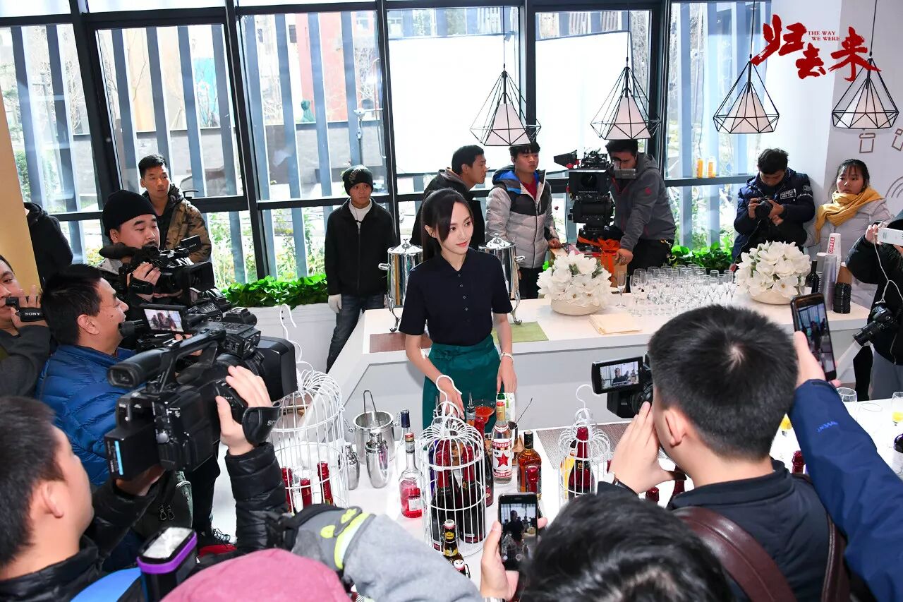 虽然室内有空调,但这时候的北京,瑟瑟冷风仍免不了寒意,唐嫣穿着服务员的短袖制服,安静地一遍遍表演调酒,始终以眼神与搭戏的演员交流。