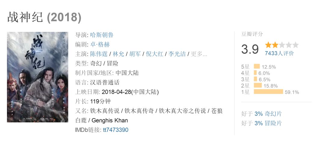 影片口碑更是波动很大,在豆瓣上的评分从最初的7.0一路下滑到5.9,这样大的跌幅是比较少见的。
