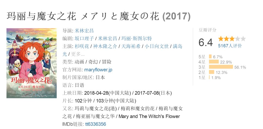 五一档影片《玛丽与魔女之花》其实也是一部转型之作,这是导演米林宏昌离开吉卜力工作室后,首次独立执导的动画长片。虽然宫崎骏等人在国内备受追捧,但这部有着吉卜力血统的动画进账并不可观,在五一档仅拿走了不足1500万的票房。http://si1.go2yd.com/get-image/0MoqC8029Zo 至于《战神纪》,除了上映当天票房破千万外,其余时间一路下滑,被不断反超。http://si1.go2yd.com/get-image/0MoqC5EnCjo