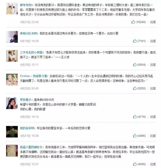 有两人想考上同一个大学而留言的:“即使有章远,高考也是场单枪匹马的战争。”