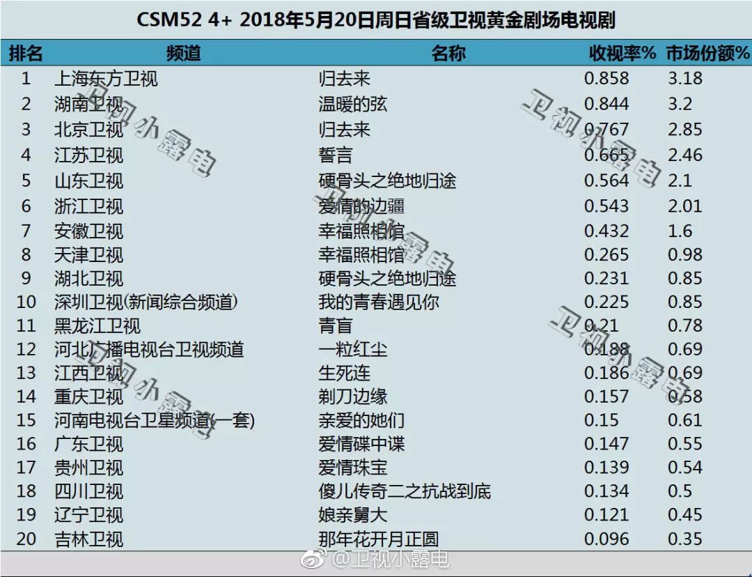 电视剧《归去来》已播出12集,以52城收视率0.858的成绩登上卫视收视排行榜榜首,网络点击量达到11.5亿。