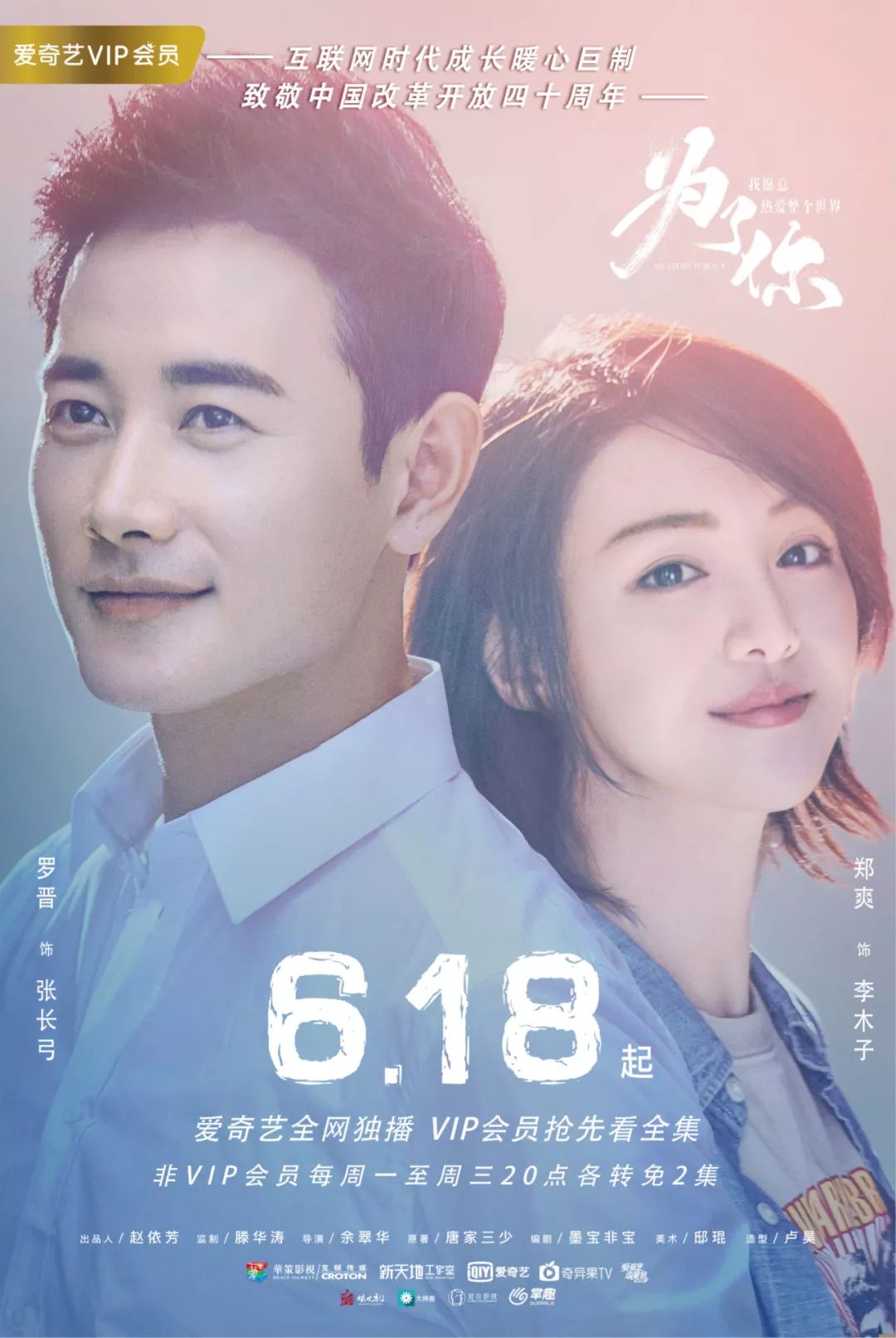 《为了你》围绕男主人公张长弓(罗晋饰)的创业经历,及与女主人公李木子(郑爽饰)的爱情展开故事,讲述80后的奋斗与爱情,散发出浓浓的情味和励志感。对于这部剧,导演余翠华感触良多,常常“拍着拍着就流泪了”。