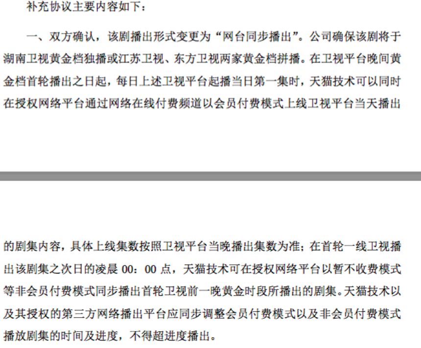 去年年底,又是一则公告,唐德宣布《巴清传》花落东方、江苏两家卫视,播出形式变更为“网台同步播出”。也就是卫视黄金档播出同时,优酷会员也能在线观看。由于变更播出平台,卫视有了更高出价,《巴清传》从优酷领先19.5个小时退缩为“网台同步”播出。受多种因素影响,目前《巴清传》前途未卜,能否继续在黄金档播出未可知,但当初信誓旦旦“攻陷”卫视黄金档的企图落空。