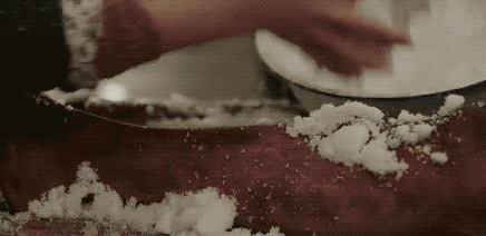以雪为例,“2017年,我们正拍摄时的冬天,沙漠里没下雪,因此戏里的雪要靠人工来造,我们想了很多办法,比如打井造雪,但风太大了,第二天雪全被刮走了,最后把外景从乌丹转移到克什克腾旗冰原,中间有300多公里”,导演巨兴茂说道,“本来便是零下三十多度的极寒天气,加上人工用鼓风机增加风雪,温度可想而知,演员们趴在雪地,摄影师也同样持着机器跟着。有一个摄助的手冻伤了,大家都非常紧张,因为他的手已经麻木到没有知觉了,我们参考剧本中治疗冻伤的方法——用雪搓,几天后好了他又到拍摄现场了,这么冷的天气,整个剧组没有人退缩。”