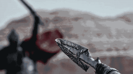 在片花中能看到有一个由深色石头构成的悬崖场景,这一段是讲述姬野被发配,流落到悬崖上做苦力。悬崖的场景实际上是高的部分和低的部分拼接起来的,在棚里搭了一部分,也有结合特效制作的部分。剧中会涉及很多特效部分,但目的是希望观众沉浸在故事和画面中,感觉不出特效的存在,不是为了炫耀特效。