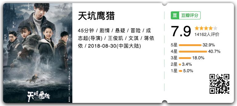 上线第一周,《天坑鹰猎》豆瓣评分上涨至7.9。